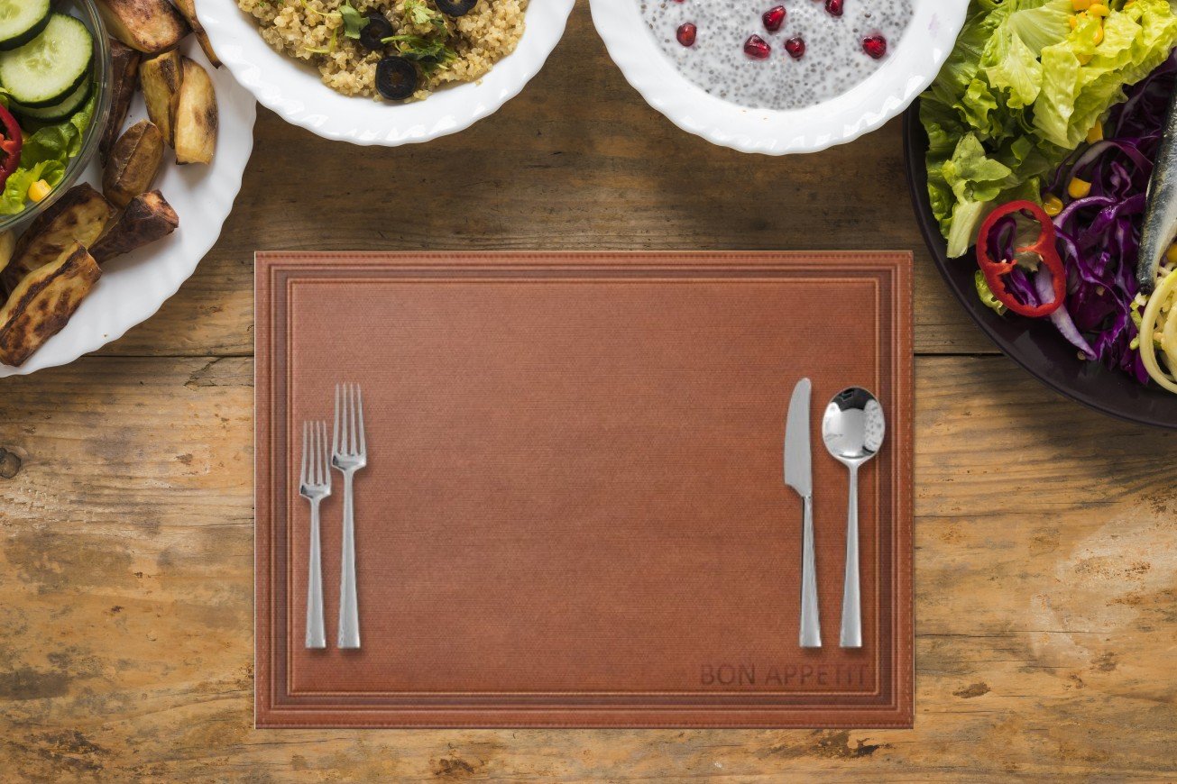Vibe 69 Placemat – Saddle Luxe (Set of 4) | Material: Poly-woven fabric – durable, lightweight, and soft to the touch | Design: Printed top with a white bottom – adds color with a clean finish | Use: Super-soft and perfect for protecting surfaces in style